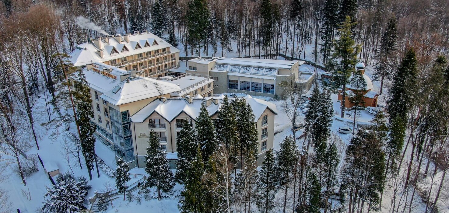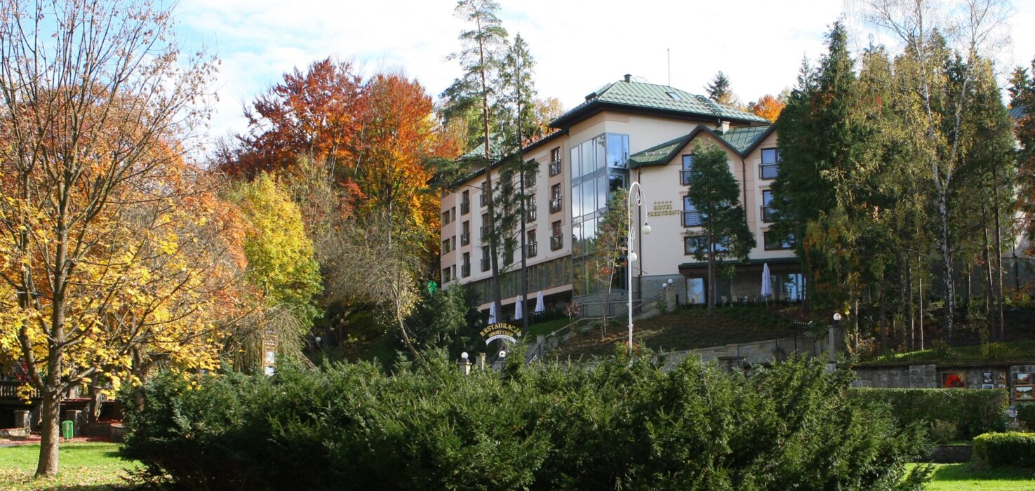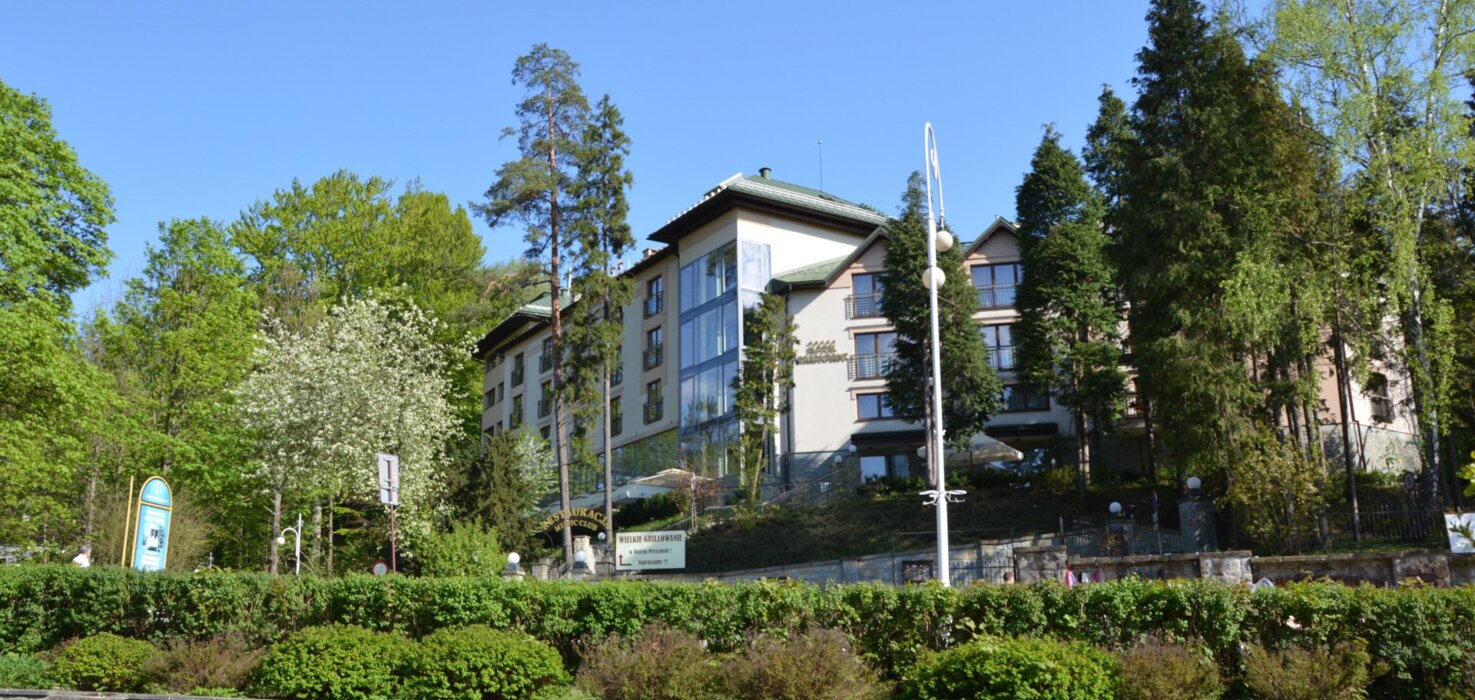 Hotel Prezydent**** Medical SPA & Wellness to miejsce z długą i bogatą historią, którą można odczuć na każdym kroku. Tradycje tego obiektu sięgają aż 1931 roku, kiedy to Prezydent RP Ignacy Mościcki, oczarowany urokliwą Krynicą, podjął decyzję o budowie Willi Prezydenckiej. Dziś, hotel kontynuuje to dziedzictwo, oferując unikalne, luksusowe zakwaterowanie dla dorosłych i młodzieży od 10 roku życia. Zlokalizowany w samym sercu "Perły Polskich Uzdrowisk" - Krynicy Zdroju, u podnóża malowniczej Góry Parkowej i słynnego Krynickiego Deptaku, Hotel Prezydent jest idealnym miejscem dla tych, którzy pragną połączyć odpoczynek z odkrywaniem historii.